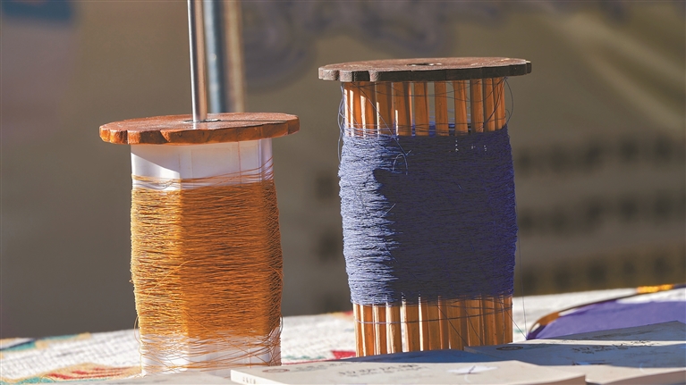 体验区里,专业风筝团队正在进行现场放飞展示。队员们手持“扩罗”线轴,迎着微风奔跑放线,风筝在湛蓝天空中舒展姿态,时而盘旋上升、时而轻盈俯冲,引得观众驻足拍照。一旁的DIY体验区则备受亲子家庭青睐,孩子们在匠人的指导下,学习扎制风筝骨架、调制颜料、绘制藏式吉祥图案,不少孩子将阿古顿巴的卡通形象画在风筝上。“把智慧爷爷画在风筝上,就能带着我们的心愿飞向天空。”达孜区的洛桑小朋友举着亲手制作的风筝,满脸成就感。