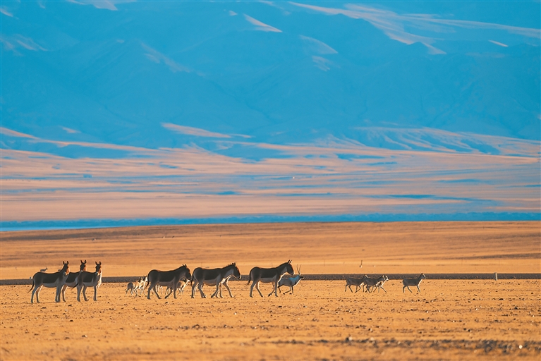 羌塘国家级自然保护区地处藏北。这里平均海拔超过4500米,栖息着藏羚羊、野牦牛、藏野驴、雪豹、黑颈鹤、藏狐、棕熊等多种珍稀动物,被誉为“野生动物的乐园”。得益于持续保护,如今的羌塘生态系统保持稳定。这片集寥廓荒凉与生命坚韧于一体的净土,在无尽苍穹下,默默见证着生命的奇迹与守护的可贵。