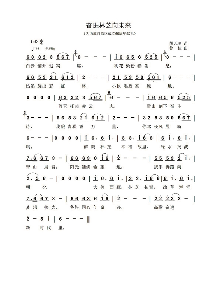 图⑨:徐佳创作的《奋进林芝向未来》曲谱。