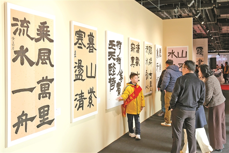 12月19日,浙江省杭州市育才京杭小学“十载京杭墨韵香”书法美育成果展在杭州英蓝中心开幕,展出小学生书法及纂刻作品90余幅,这是该校办学十周年的展示活动。