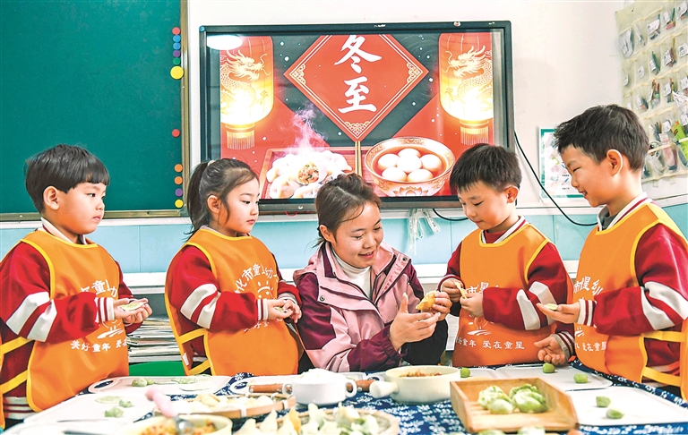 临近冬至,各地开展包饺子迎冬至活动。