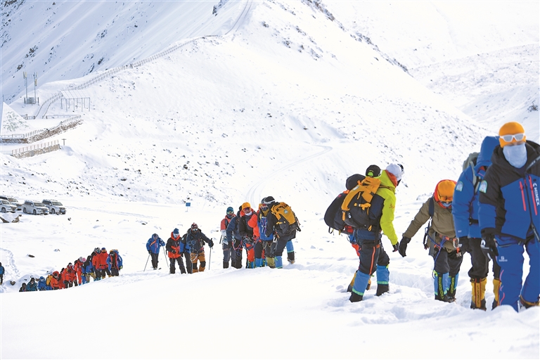 4月29日至5月3日,2025第二十二届中国西藏登山大会暨纪念中国人再登珠穆朗玛峰50周年系列活动——洛堆峰登山探险活动在拉萨市羊八井镇举行。 图为5月2日,登山爱好者向洛堆峰峰顶进发(资料图片)。本报记者 潘多 郑璐 明吉 摄影报道