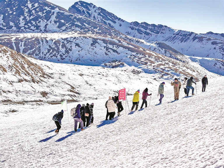 12月20日,我区各机关、企事业单位的近200名干部职工登山爱好者齐聚拉萨市西北方向的雪古拉山,共同参与由自治区体育局与自治区区直机关工委联合主办的2025年冰雪运动进机关企事业单位活动。