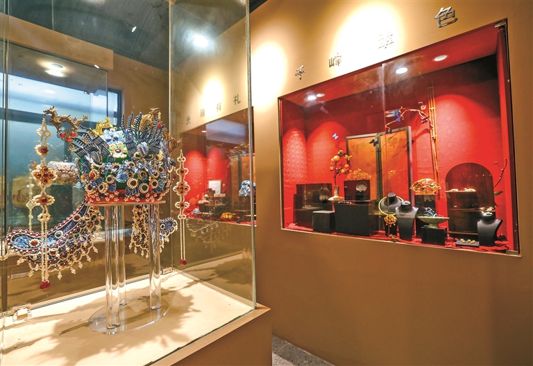 图为12月24日拍摄的位于匡堰镇倡隆村的楝树下艺术村落的花丝镶嵌非遗工坊的展厅。