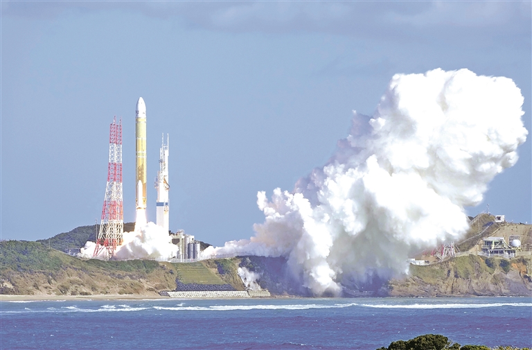图为12月22日,在日本南部种子岛宇宙中心,搭载导航卫星“引路5号”的H3火箭发射升空。新华社/共同社
