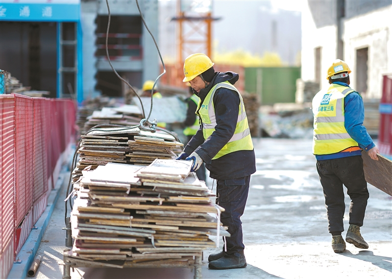 图为1月2日,工人在位于上海的中建三局一公司灿瑞科技全球芯片研发中心项目工地施工。