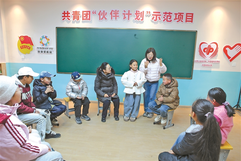 近日,拉萨市“共青团·伙伴计划”青少年多元化托管项目启动仪式在城关区嘎玛贡桑街道统建社区举行。该项目聚焦青少年亲情陪伴、学业辅导等需求,整合多方资源,通过系统化课程与多样化活动,构建多元化托管服务体系。 图为孩子们上心理健康辅导课。本报记者 格桑伦珠 摄