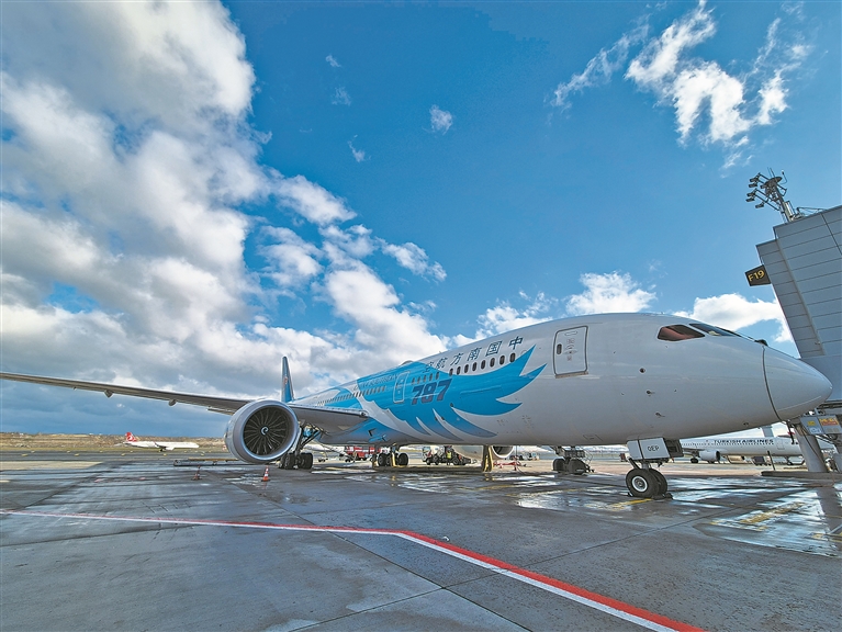 图为2026年1月2日,部分可享受免签待遇的中国游客乘坐的中国南方航空公司飞机停靠在土耳其伊斯坦布尔机场。