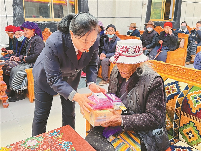 图为检察干警为老人送上慰问品。本报记者 巴桑旺姆 摄