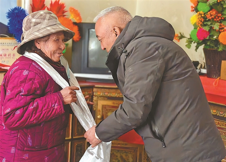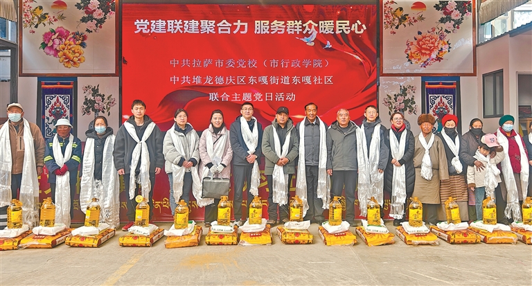 党校党员为30户困难居民发放慰问品。本报记者 格桑伦珠 摄