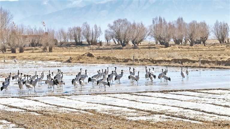 同时,“守护黑颈鹤”已写入村规民约,保护行动已深深融入当地群众的日常生活。艾玛乡拉布村村民仁增多吉说:“如今黑颈鹤白天在田间觅食,傍晚飞往江边休息,和我们相处得很融洽。看着它们一年比一年多,心里特别自豪。”
