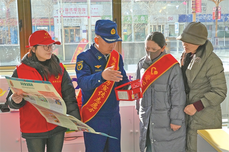 针对沿街商铺火灾隐患突出问题,消防宣传员联合电信职工开展“敲门入户”精准宣传,发放汉藏双语消防手册,讲解消防规范要求,排查并指导整改电气线路老化、杂物违规堆放等隐患。与此同时,依托电信“爱心翼站”的“银发守护·暖冬消防”志愿关爱行动同步启动。消防志愿者深入社区,针对独居老人等特殊群体居家安全薄弱环节推进“三个一”专项服务:“地毯式”排查电气、取暖、燃气等关键部位隐患;“手把手”传授灭火器、灭火毯使用及初起火灾扑救技巧;“暖心式”赠送含逃生面罩、急救药品等物资的定制应急包,精准适配高原冬季需求。此外,消防与电信工作人员还围绕依托“爱心翼站”网点优势搭建常态化消防宣传阵地展开探讨,推动消防安全知识融入便民服务场景,切实实现消防宣传工作长效化、常态化。