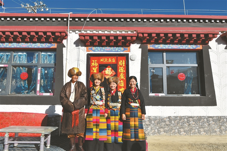 左图:拉孜县锡钦乡锡钦村村民一家人在新居前拍下全家福。