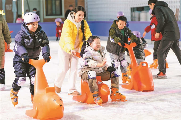 左图:1月10日,游客在合肥市新粮仓商业合集滑冰。新华社记者 杜宇 摄