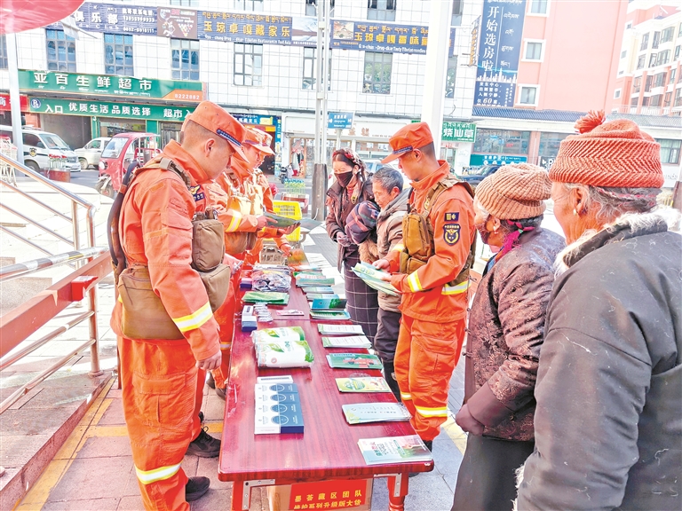 日喀则消防救援机动大队开展防灭火知识宣讲。本报记者 旦增旺姆 本报通讯员 洛桑顿珠 摄