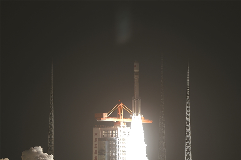 图为1月13日22时16分,我国在太原卫星发射中心使用长征六号改运载火箭,成功将遥感五十号01星发射升空,卫星顺利进入预定轨道,发射任务取得圆满成功。
