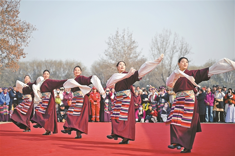 1月17日,一场西藏非遗展演在西安大明宫国家遗址公园举行,来自西藏自治区昌都市基层文艺团体的演员用精彩的节目展示藏族文化魅力。