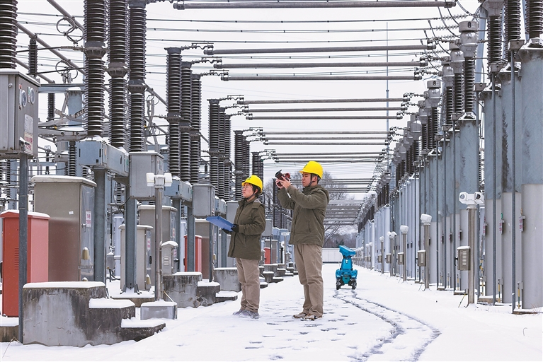 近期,针对大范围降雪及降温天气,各地采取多项措施积极应对。图为1月20日,国网泰州供电公司运维人员使用机器人等设备对变电站进行雪后巡视。新华社发(汤德宏 摄)
