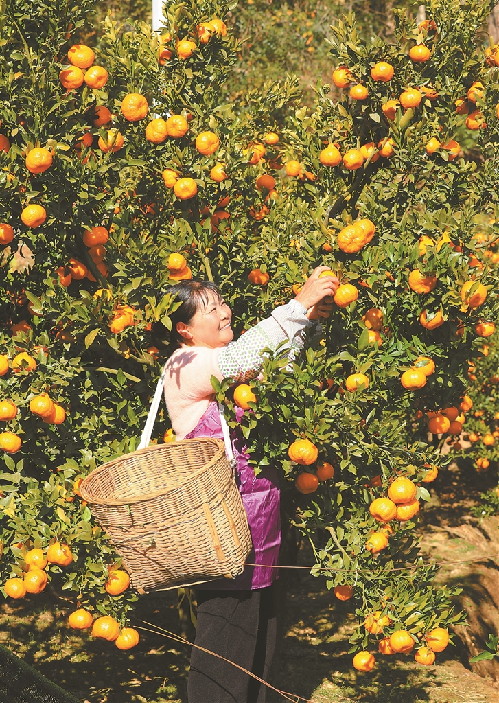 图②:图为果农在云南省腾冲市五合乡半山橘园采摘柑橘。