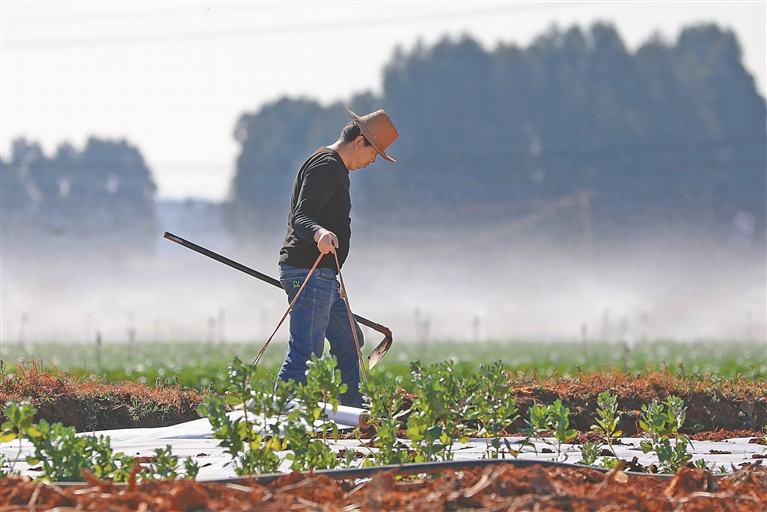 图①:1月20日,在云南省曲靖市陆良县芳华镇双合村,农民为小春马铃薯覆盖地膜。