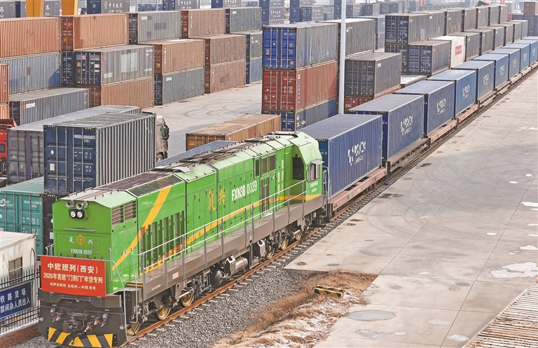 1月21日,2026年首趟中欧班列(西安)“门到门”年货专列满载着哈萨克斯坦成品粮油、蜂蜜等农产品驶抵西安。已连续开行三年的中欧班列(西安)“门到门”年货专列,实现从国外仓库发运到国内仓库收货的“门到门”运输,既有效提升货物运输效率、降低企业运输成本,又丰富春节市场供应。