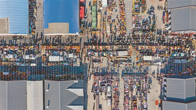 1月21日拍摄的金贵大集(无人机照片)。新华社记者 杨植森 摄