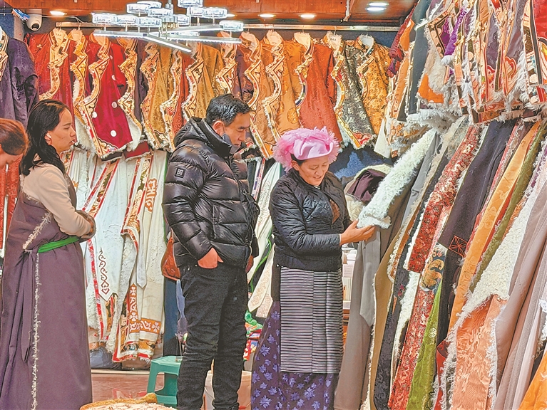 图为市民在购买藏装。