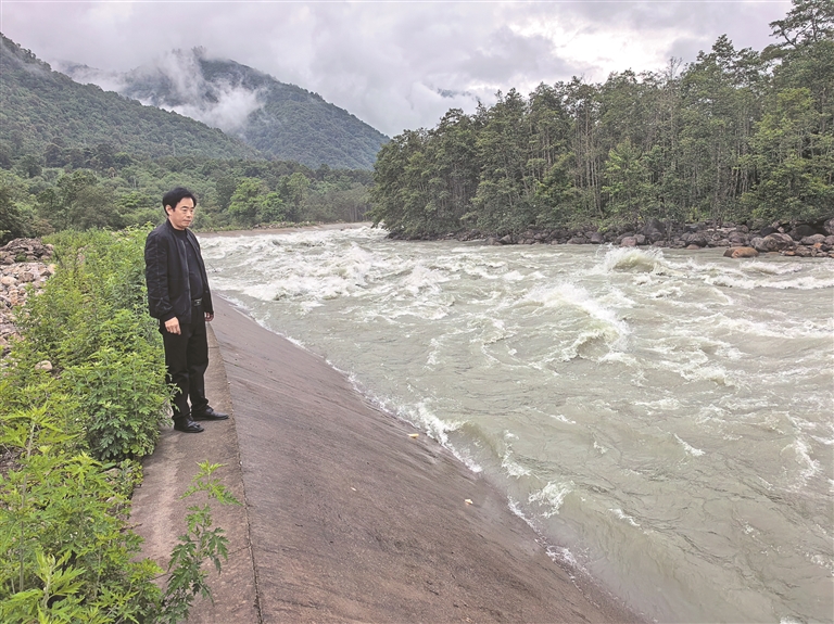 图为林芝市墨脱县格当乡的巡河队员在巡查河流。