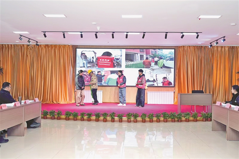 ?基层工作者通过情景演绎展现党建品牌服务实效。
