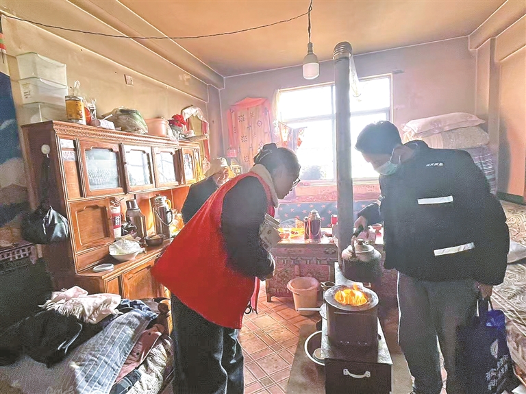 图为工作人员在检查火灾隐患。本报记者 格桑伦珠 摄
