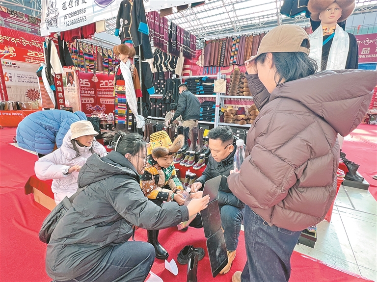 “这是我第二次来拉萨做生意,这里的生意真不错!”不丹商户扎西的木碗展位前客流不断,他一边麻利地打包商品,一边笑着说道。去年首次来拉萨参展,短短8天就卖出18万元,让他对拉萨市场格外青睐和重视。这些年走遍西藏多个地市参展,边巴深切感受到拉萨的人气与消费活力,“市民对异域风情商品接受度高,待人也友善”。此次日喀则年货展销结束后,他特意停留7天补充货源,带着优质木碗赶来拉萨,“盼着延续去年的好行情”。他的木碗纹理自然、做工精巧,问询声、成交声接连不断,不少市民当场下单。