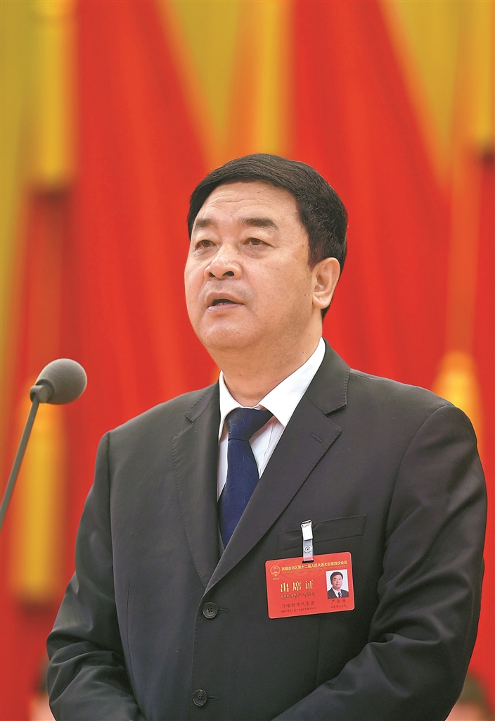 根据会议议程,自治区主席嘎玛泽登代表自治区人民政府向大会作政府工作报告,报告分三部分:2025年和“十四五”时期工作回顾、“十五五”时期经济社会发展把握的重要要求、2026年重点工作。