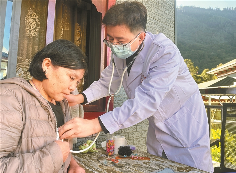 图为林芝市墨脱县格当乡卫生院的医生入户为群众开展诊疗服务。本报记者 王敏 本报通讯员 郎玲 摄