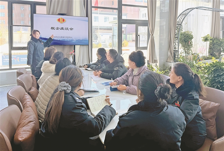 图为国家税务总局谢通门县税务局召开税企座谈会,向企业问计问需。本报记者 袁海霞 摄