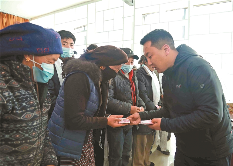 ?图为工作人员为群众发放慰问金。本报记者 格桑伦珠 刘琳琳 摄