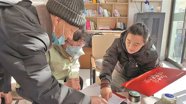 图为社区工作人员为受助群众发放温暖包。本报记者 刘琳琳 摄