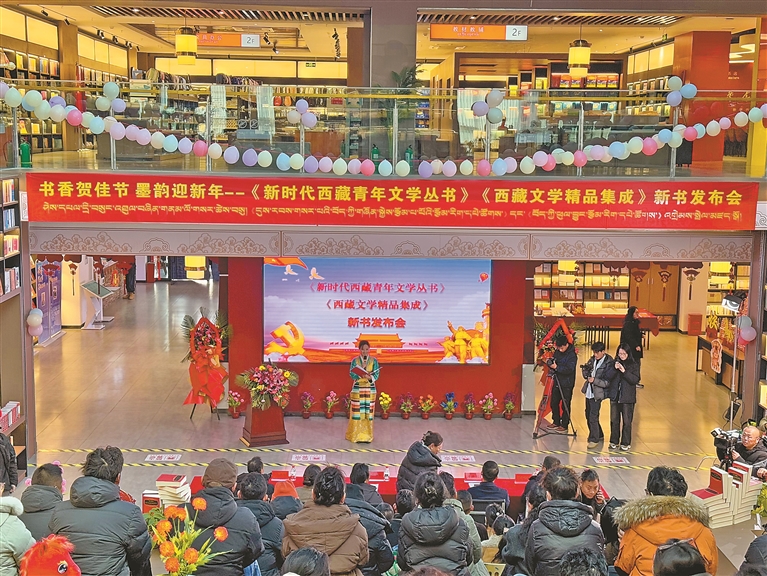 近日,西藏人民出版社(西藏自治区新华书店)分别在拉萨中心书城和新华书吧举行《世界屋脊的瓦片——陈人杰诗歌集》《放生羊——次仁罗布短篇小说集》《新时代西藏青年文学丛书》《西藏文学精品集成3卷》图书首发仪式。