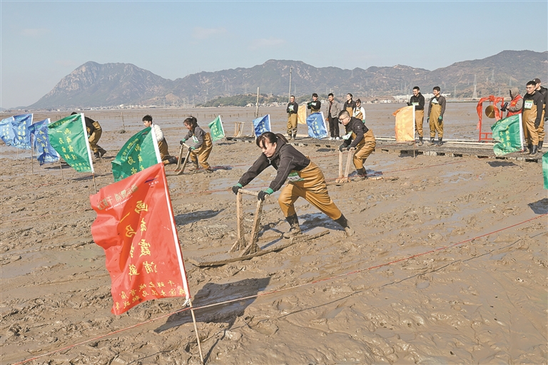2月8日,一场滩涂“木泥马”挑战赛在福建省霞浦县冬瓜山赶海基地举行,选手们用传统赶海工具“木泥马”(又称“泥橇”)在滩涂上接力滑行、奋勇争先,以别样方式迎接马年春节。“木泥马”这一传统渔具如今变身地方特色文旅项目,成为游客赶海新玩法。同时,霞浦县宏昌工业文创基地内的跑马场和马文化美术展也随春节临近热度攀升,吸引游客参观、体验。