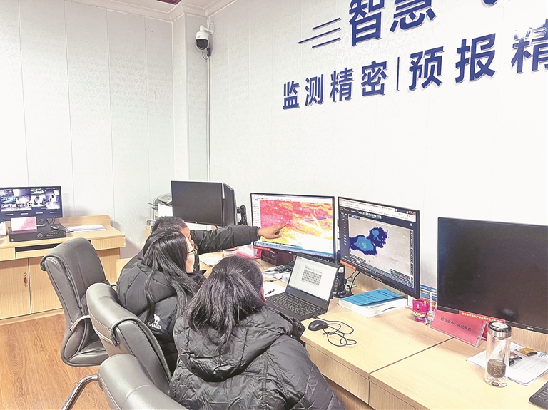 图为昌都市气象局工作人员在实时监测天气情况。本报记者 周婷婷 摄