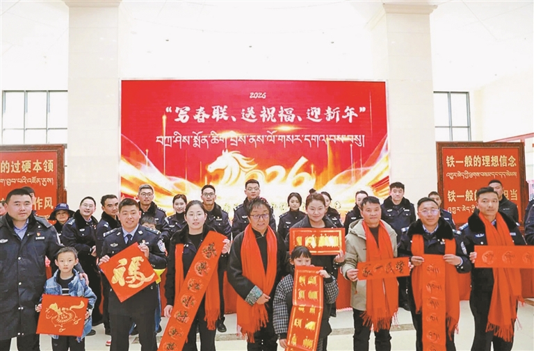 本报拉萨讯(记者 旦增旺姆 见习记者 土旦仁青)2月6日下午,拉萨市公安局开展“写春联、送祝福、迎新年”活动,200余名民辅警代表及警属齐聚一堂,在翰墨馨香中共迎佳节。