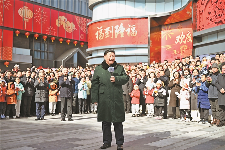 2月9日至10日,中共中央总书记、国家主席、中央军委主席习近平在北京考察并看望慰问基层干部群众。这是10日上午,习近平在东城区隆福寺街区考察时,向全国各族人民和香港同胞、澳门同胞、台湾同胞、海外侨胞致以美好的新春祝福。新华社记者 燕雁 摄