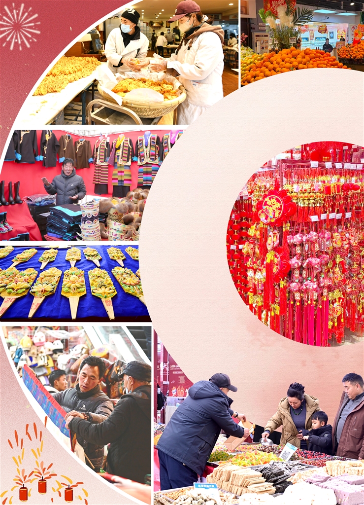 随着春节、藏历新年临近,拉萨街头巷尾洋溢着喜庆祥和的节日氛围。家家户户忙着采办年货,各大市场人流如织,购销两旺,传统民俗用品与特色美食相映成趣,中外精品与本地特产琳琅满目,既传承着雪域文脉,更彰显着开放发展的时代气息,勾勒出一幅民生幸福、市场繁荣的新春图景。