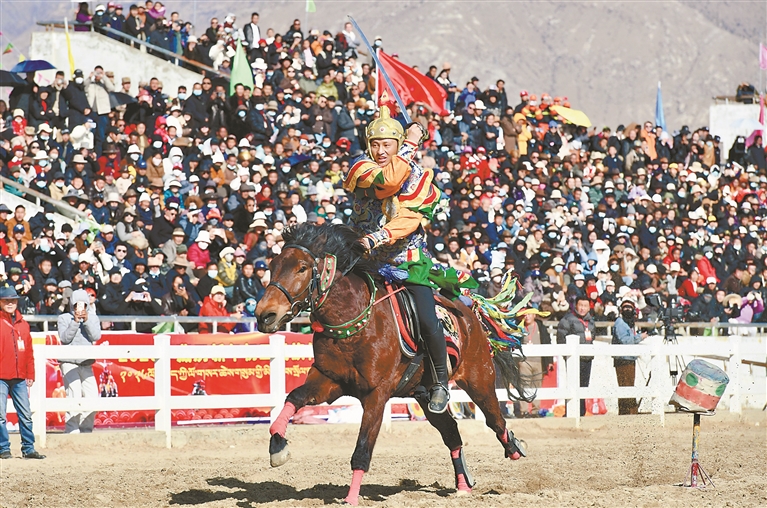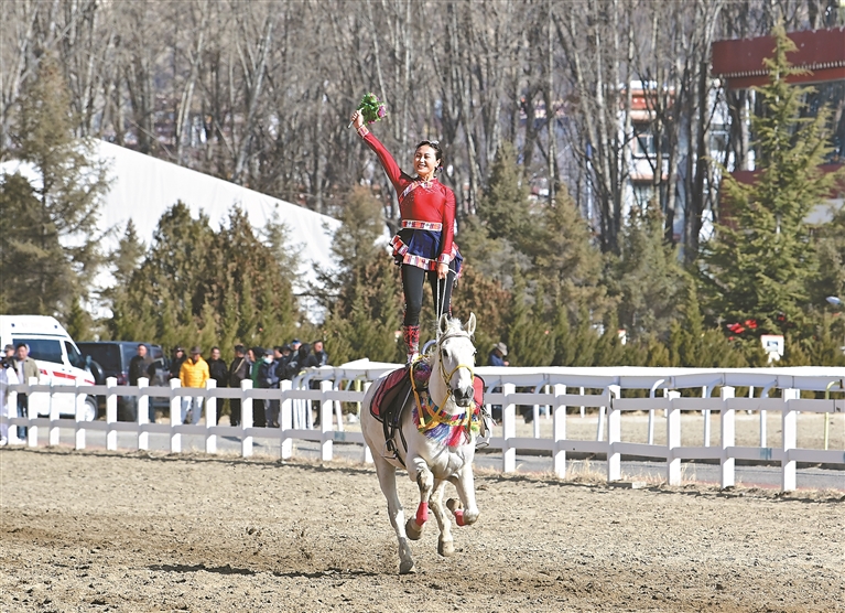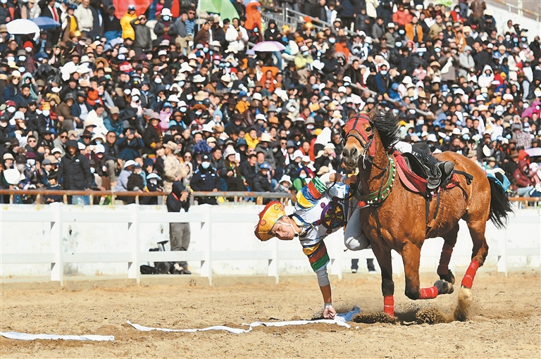本报拉萨2月20日讯(记者 平措诺吉 郑璐)20日,藏历新年初三,拉萨阳光明媚、晴空万里。北郊赛马场内人声鼎沸、彩旗猎猎,2026年藏历新年初三民族传统马术表演暨民族赛马活动在这里精彩上演,为各族群众献上一场独具特色的节日文化盛宴。