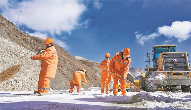 图④:在国道349线夏贡拉山段,养路工人节日期间全力守护群众平安出行。