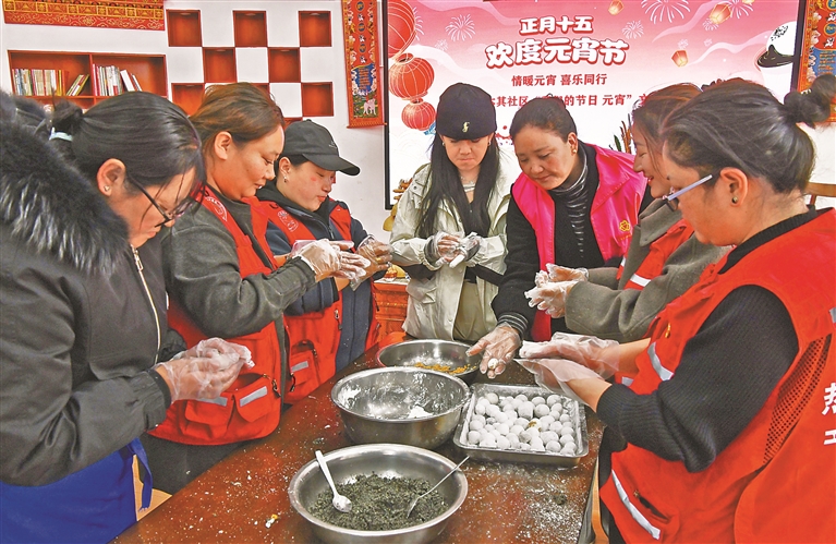 图为拉萨市城关区吉崩岗街道热木其社区群众和社区工作人员正在包汤圆。本报记者 旦增兰泽 摄