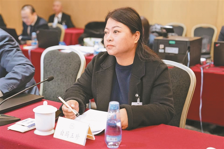 3月7日,全国政协委员白玛玉珍参加所在界别小组讨论。