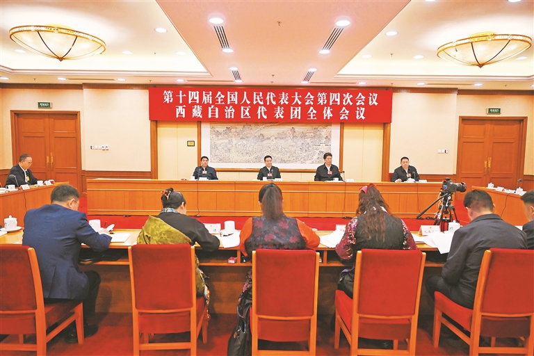 本报北京3月9日电(记者 张黎黎 刘文涛)3月9日,西藏代表团举行全体会议,审议全国人大常委会工作报告、关于法律清理工作情况和有关法律和决定处理意见的报告。