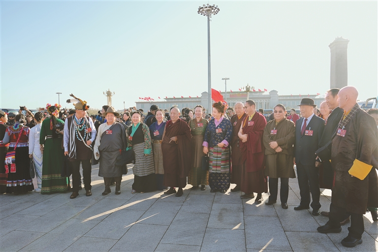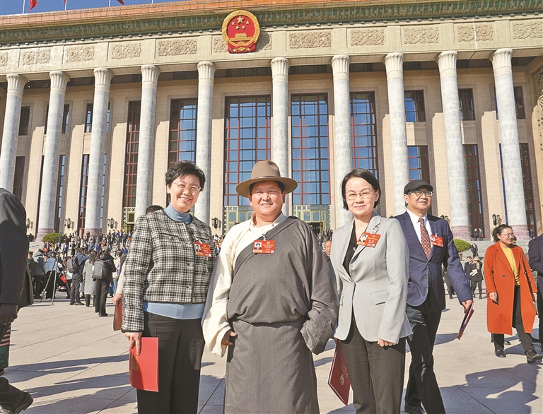 图为住藏全国政协委员在人民大会堂前合影。本报记者 陶玥 摄
