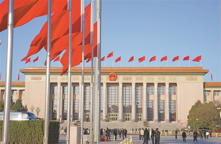 图为3月11日上午,全国政协十四届四次会议在北京人民大会堂举行闭幕会。这是人民大会堂外景。本报记者 陶玥 摄