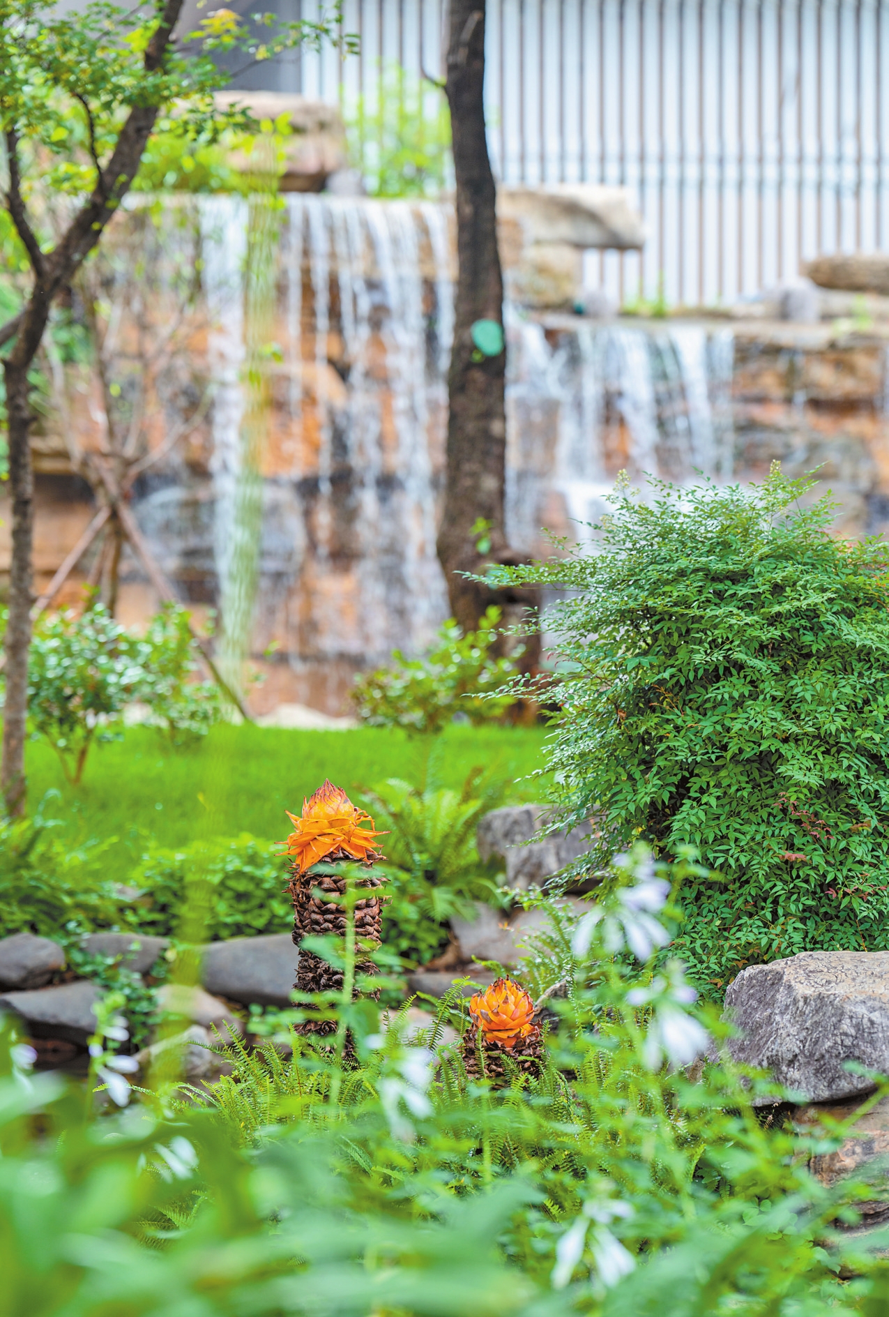 此次提升改造中,通过协商拆除路旁单位绿化围挡、围墙,向周边居民释放约1万平方米的优质绿化活动空间。交三桥地铁站B站口绿地在此次提升改造中增加了具有现代感、色彩丰富的景观元素,打开“L”形绿地围栏和灌木丛,保留已有蓝花楹、冬樱花,补植滇楸,填补现有乔木开花时间空档,打造树荫下可进入使用的阶梯式休闲平台,成为城市社区“绿色会客厅”。